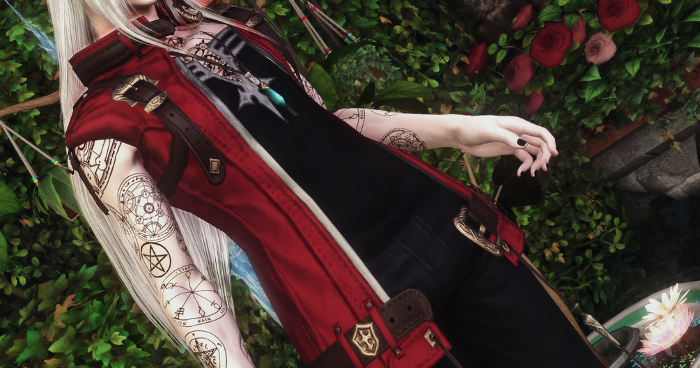 An upscale of Lyse's Scion's Liberator hooded vest + a mashup with Leonhart's jacket's undershirt, reversed for it to be black and white instead of white and black.